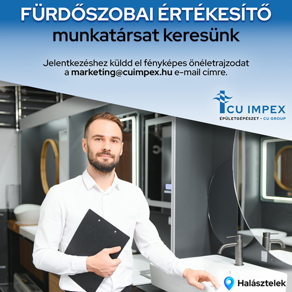 Ha érdekel a kereskedelem és szaniterek világa, illetve szívesen lennél egy lendületes, fejlődő csapat tagja, várjuk jelentkezésed!
